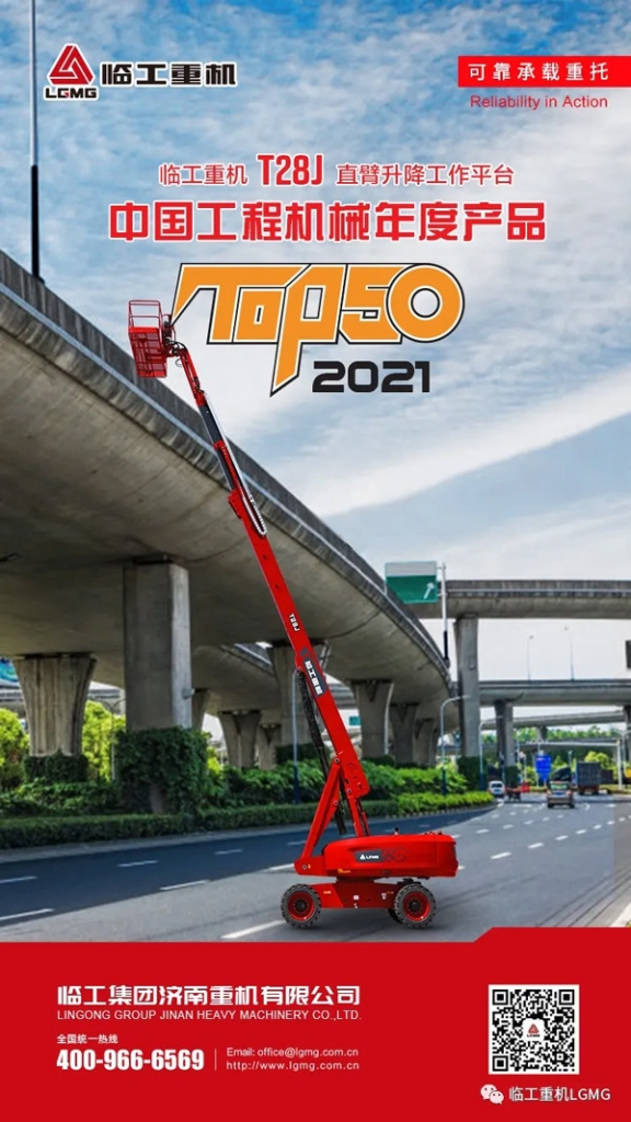 南宫NG·28(中国)相信品牌力量重机T28J直臂式升降工作平台荣获2021中国工程机械TOP50奖